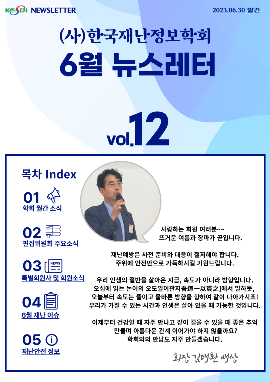 (사)한국재난정보학회 뉴스레터 Vol.12(23년 6월호)2023-06-30 -