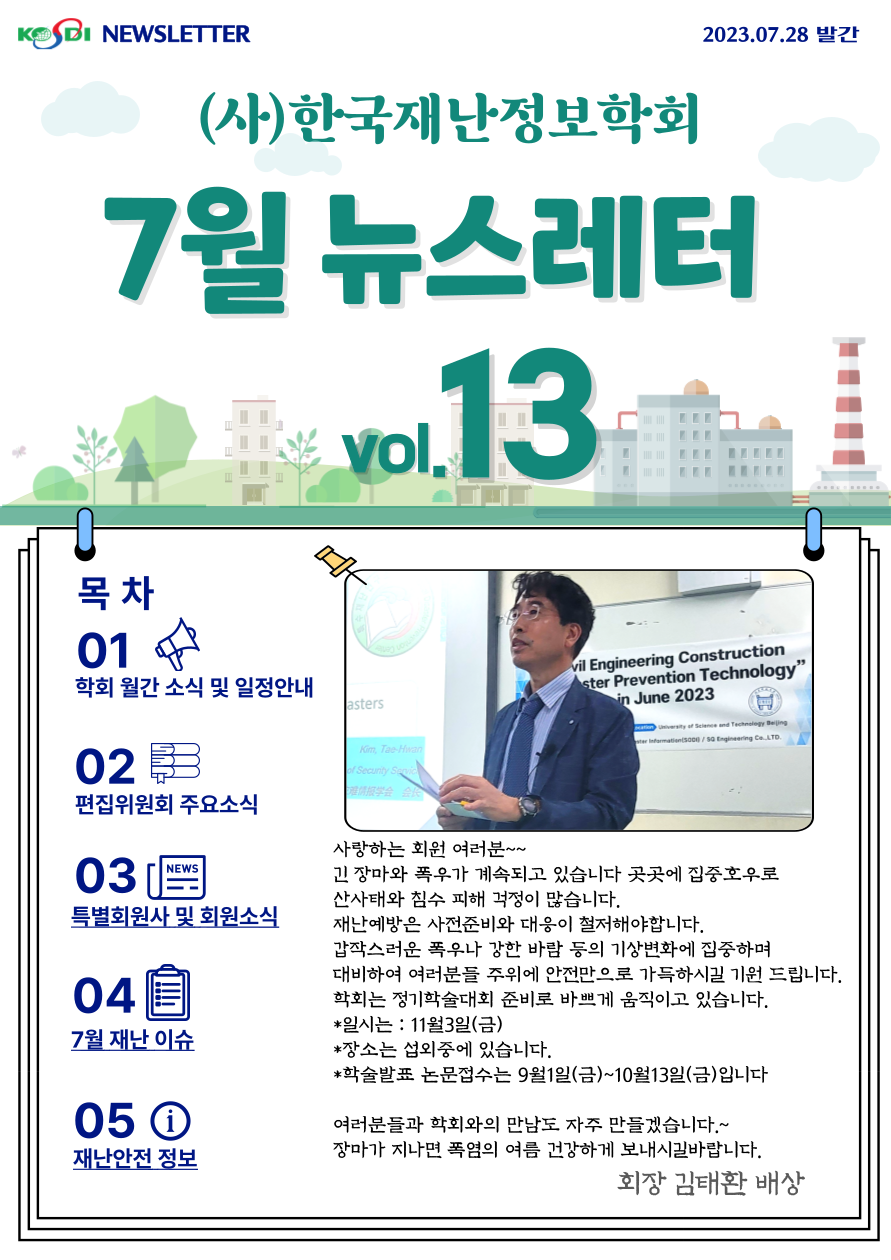 (사)한국재난정보학회 뉴스레터 Vol.13(23년7월호)2023-08-01 -